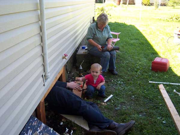 Always the helper! Zeke was repairing the water lines under the house. It was really muddy!