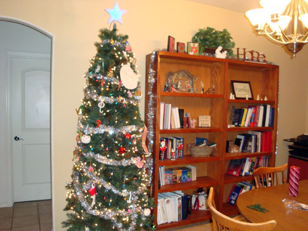 | After moving into this house, we managed to put up a Christmas tree and even a few decorations prior to Christmas. I don't know how we managed that, but it was mostly due to Terra's diligence. If it were up to me, I think that I would have taken this year off, and done it next year, but Terra is of a better temperament than I am. | ![]() |