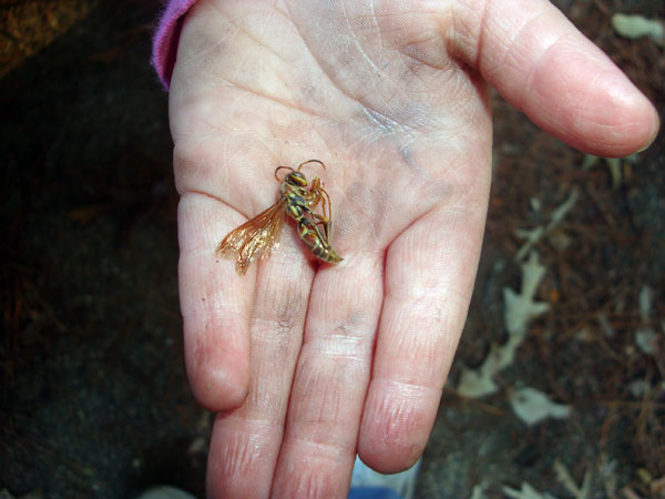 | Rachel was helping me with the timing belt change out, and during the ordeal she pulled this hornet out of a crevecs in the front of the vehicle. This is one of the flying insects that I was referring to. These types of things were all over and you couldn't help but hit them - especially during the twilight hours (when you were on your way back and forth to work). Just before we made the move, Mylinda and Zeke came down for a visit. It was nice to see them, and I am sure that they enjoyed the 6 hour drive as opposed to their recent 20+ hour drive to visit people. |