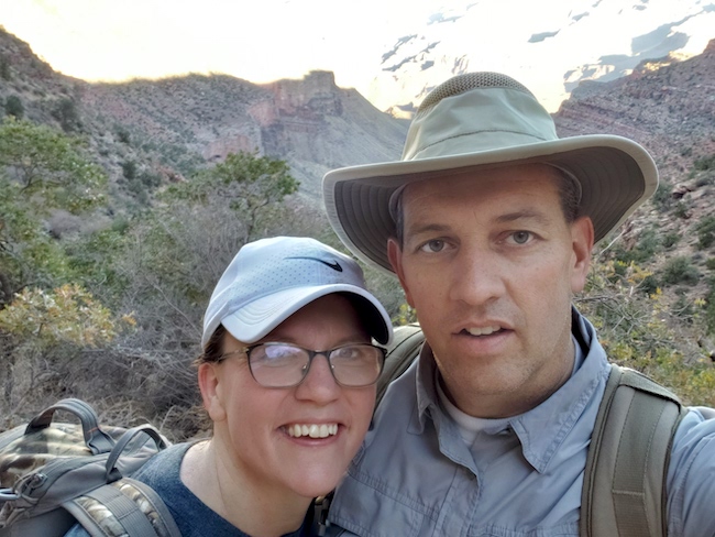 We started this hike by staying with Ryan & Carol Sanders in Flagstaff. Actually we never actually saw Ryan, but did see Carol - twice. We left Flagstaff close to 5:00 in the morning and headed to the east gate (it was closer to Carol's house). As we approached the east gate, we found it closed. This information was never relayed to us when we called the park to inquire as to the status of the shuttles. We were told the shuttles were not running so we had to adjust the plans again and chose to go down and back the same trail...Bright Angel.