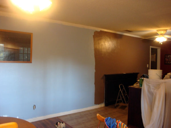 | Here is the first attempt to change the color of the dining room. She allowed the kids to take part in the adventure, and they had a great time (they just like to make a mess, and this was a license to do so). Terra started with a primer to first paint it white and then went back with a light blue. I wasn't home during these activities, or I may have helped, well I may have at least tried to better document the events. I was actually at an auction while the activities were happening. |