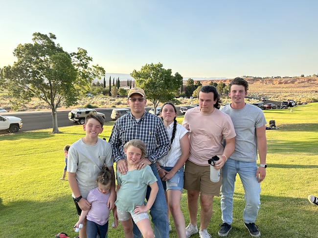 This photo to the right is us at a park on the 4th of July. Page was having a shin-dig at the park and had some live bands invited to play. We watched for 20-30 minutes and then decided that the music wasn't our thing, and we went home for dinner. We came back to this spot after dark and watched the fireworkds in Page that evening.