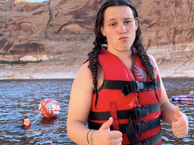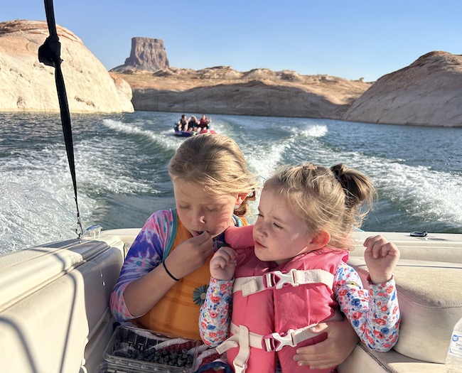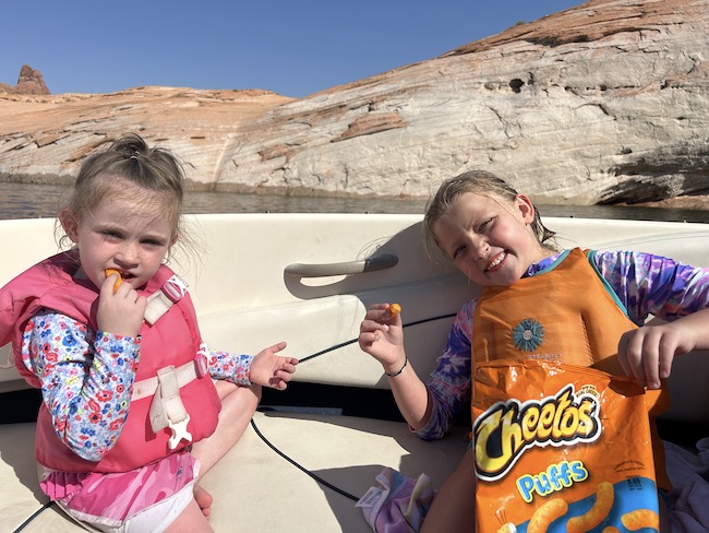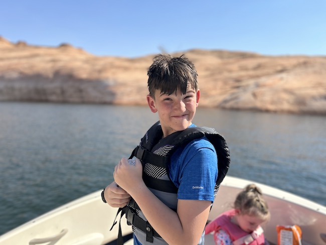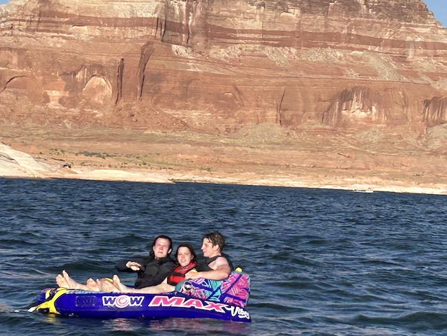 During this trip to Lake Powell I wanted to go see some of the more picturesque parts of the lake. To that end, I consulted a map and decided that labrynth canyon was the spot. So one day, we set off and drove about 1.5 hours up the lake to this canyon. As it turned out, this canyon, while very interesting, was not the place I was hoping it would be. Nonetheless, we ventured up the winding canyons and found a spot where the walls closed in and ended. The kids got out and swam upstream and found the head of the canyon, there was a snake in there and they enjoyed observing it and eventually we had to back up and get out.