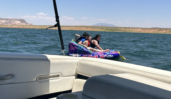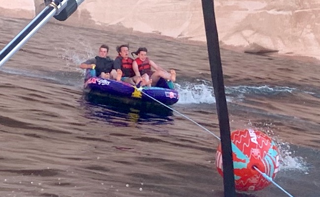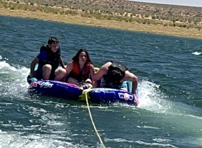 Landen didn't enjoy the raft on this trip, but after we visited the lake later on in the summer, he developed the appetite to play around on the raft behind the boat. It seems like the kids, during their early teen years, develop the desire/want to be thrown around and try to hang on for dear life.