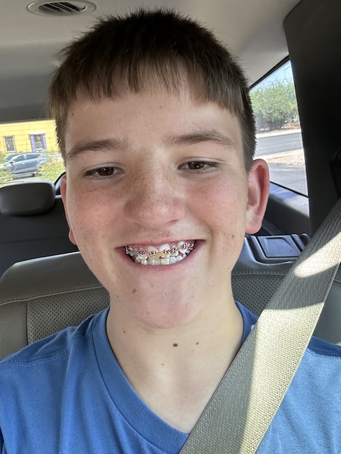 Landed also recieved his Braces this summer. He has lots of work to get everything straightened out including needing oral surgury to remove a baby tooth and install a chain to pull his K9 down into its proper orientation. |