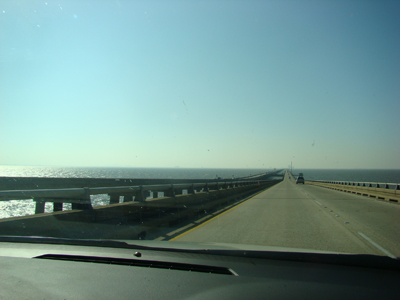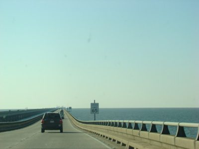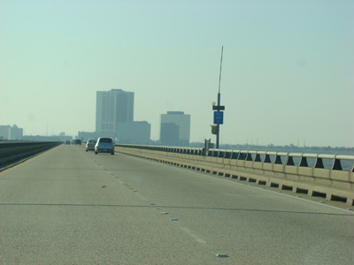 | The causeway is 21 miles long and a bridge the entire way. It has many (7-10) hills in it where I suspect that boats can cross the road, and there is even one draw bridge (for large boats). This road is a toll way, and as we left New Orleans, our directions told us to cross it. Since it was dark we thought that we had better stick to the printed directions and not venture forth in uncharted territory so we decided to cross it. Well it was dark and there was no toll. Since we tried it once in the dark, we wanted to see it in the day light so on the way back to the airport we crossed it. Any guess on the toll? I thought $0.35 - $0.95, and so I made sure that I had a pocket full of change, well I was wrong. It costs $3 to cross the blasted road and if you have a car that is taller than 7' it costs $5. Like it really is more damage to drive a taller vehicle across the bloody road. |