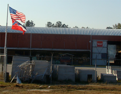 If you look in many of these pictures you can see the plumes of steam that is being produced from the mill. We took pictures that were typical of what we found as we drove around the area. Basically when I wasn't in the interview we were driving around just taking in what we saw. Bogalusa is located about 5 miles west of Mississippi, so we just had to venture over there and take a look around. Although not shown, we even found a hand full of houses that were flying the confederate flag on their property. |