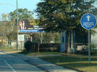 This sign is part of the Hurricane Evacuation Route (I know self evident) what it means is when an evacuation order is given for New Oleans, this street becomes a multiple lane one way road away from the coast. If you choose not to evacuate, that is fine, but stay off of this road, because once on it, you cant exit and must proceed with the flow of traffic to where ever it leads to. It is interesting that people are accustomed to what ever they are used to. What I mean is that everyone there doesn't mind hurricanes. It is the fires that terrify them. In Iowa, tornados are great, but they would never live in hurricane country. In Arizona, fires aren't that bad, but who would ever live where there are tornados... |