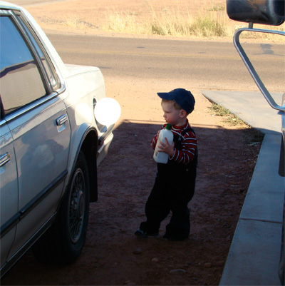 last wrote one of these letters, and since time wont quit for us, we are going to have to keep up and try to post one or two when ever we can get an opportunity. Since today is Sunday, and Terre is gone at one of her meetings, I find myself with a quite house and time to see if I can't put a few words to paper and convey the happenings of our last week (or three). I spent a Saturday out changing the oil on all three cars, and had the help of Ethen and Kyle. Luckily, Kyle doesn't know how to open up the bottles of oil or the white car wouldn't be getting all of that great gas milage that I have been enjoying. In addition to trying to help pouring the oil in for me, they also like to give the bottles of oil a walk around the neighbor hood, and I think that I may have actually lost a bottle or two in the time that it took for me to change the oil on all three cars. |