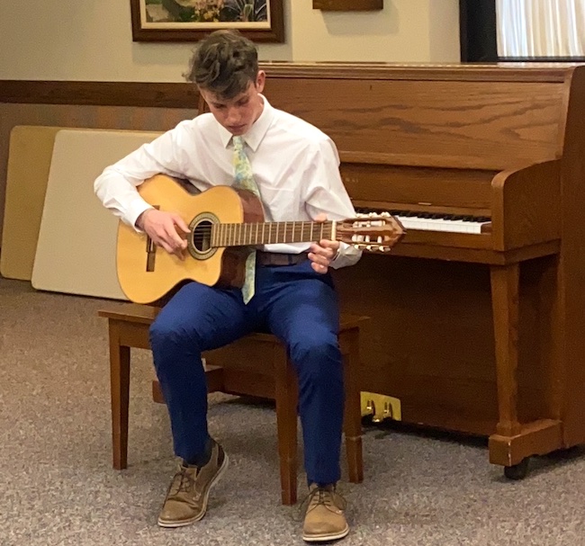 This year Kyle played the guitar instead of the piano. I am not sure if he liked playing the guitar better than the piano, but he enjoys the guitar so there is that. |