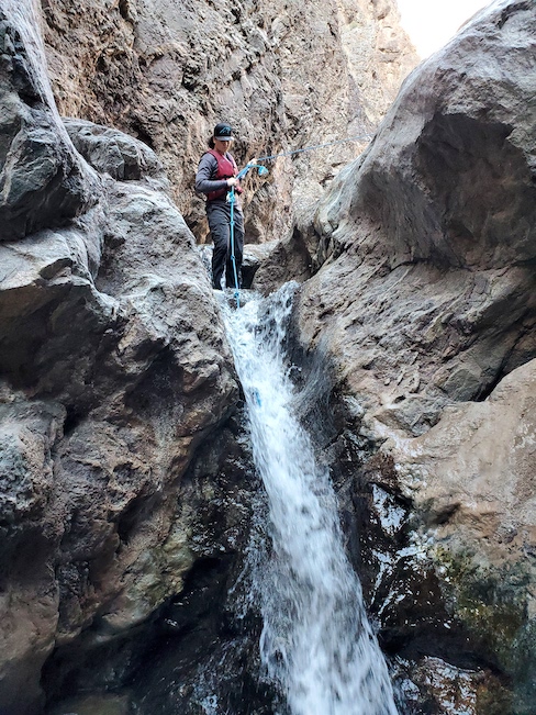 | Some of the hot springs were flowing more than others, but in all of the ones we examined the water would seep out of cracks in the rocks. Here is one that was coming out of the rocks and falling into the river below. |