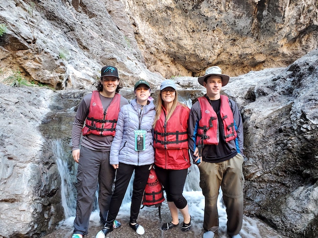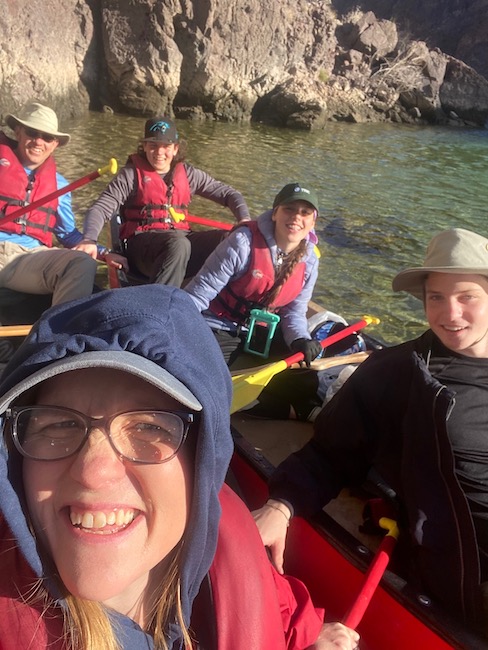 For Spring break this year we decided to take a trip with the oder three kids, Ethen, Kyle & Rachel. The trip was first going to be a 3 day backpacking trip in the Supersticion Mountains, then it turned into a 3 day canoeing trip down the Colorado River, and that finally morphed into a Colorado River canoe trip with some hiking to follow. We had Mylinda & Sabrina watch our 3 younger kids for the 4 days to travel and explore.
