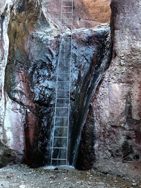We found a slit in the rock miles up stream that wasn't as wide nor as tall, but is was almost neater than this cove was. The sun wasn't at the same angle to shine the cove green, but we could fit 2 canoes into the slit. I suspect at higher water flows, it would have been inaccessable. |