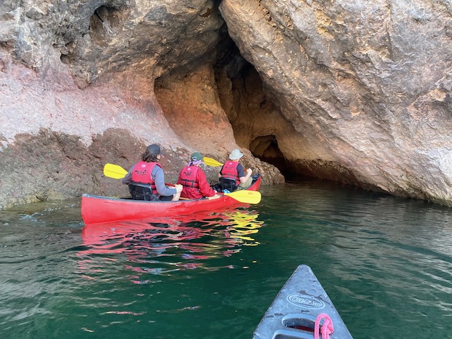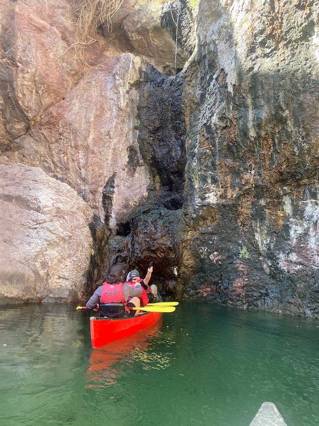 Near Willow Beach we found Emerald Cove. This is a cave like attribute of the wall at the water level. You could eaisly fit many canoes or kayaks into this cove. Since this is well known and near Willow Beach, there were many other adventurers that we had to wait for them to come out prior to our accessing the cove.