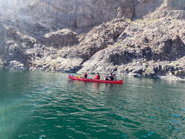 | We rented some canoes and were put into the Colorado just downstream of the Hoover Dam. |