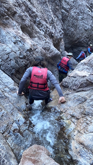 The second hot springs we explored was the Arizona Hot Springs. This was accessable by both the river and from hiking from Highway 93. The springs were elaborate with ladders to access the water falls and there was bags of sand to pool the springs into swimming pools. It was pretty neat. What we weren't expecting was some of the other visitors decided that they would try out the springs without their clothing. After meeting some people with these ideas we decided we had seen enough of these springs and we headed back down to the canoes to head farther down stream. They followed us and waved us goodbye riverside. |