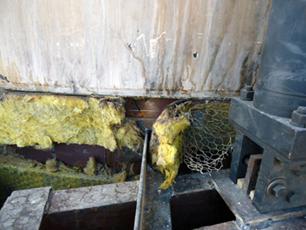 The new stack liner was then insulated with a 2 inch fiberglass insulation to minimize the flue gas from cooling off to the point where it condenses any more water prior to exiting the stack. In addition to the stack liner replacement, we replaced some of the duct work. Here is the duct work being removed and then re-installed. Once the duct work went back in, the dampers were placed and then the interior of the horizontal ducts adjacent to the dampers were also lined with C-276 Hastelloy. |