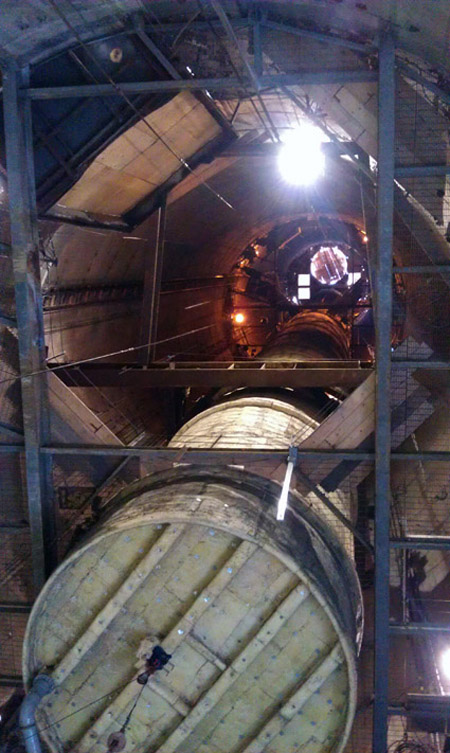 View looking up in the chimney (Unit 2 stack on left) starting be be lowered |