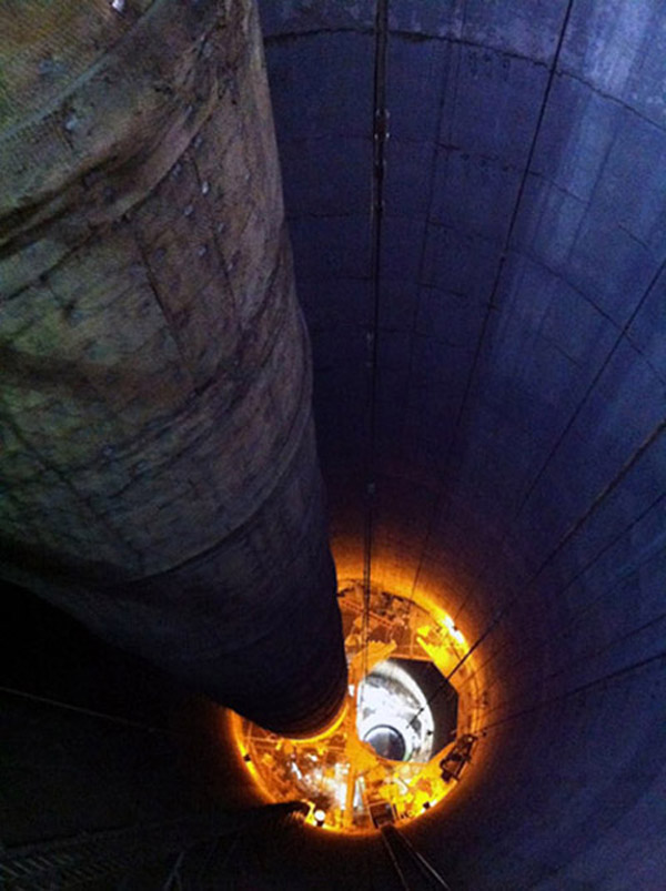 Here is a view looking up with the #2 stack liner missing. You will notice the newly constructed #3 stack liner still in place. |