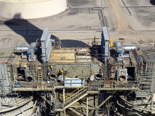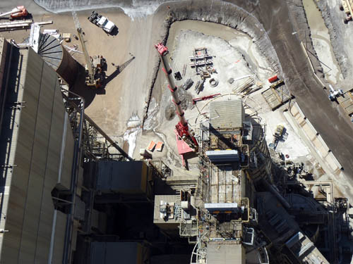 Looking down at crane and U3 scrubber towers and new dampers |