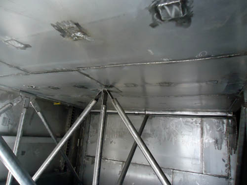 New hastelloy installed on floor and bottom of walls in breaching duct |