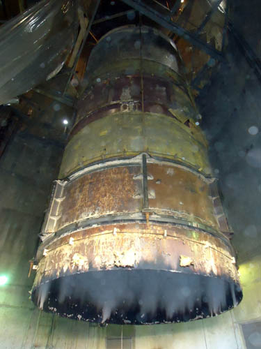 | The two outlet ducts have dampers on them that were also replaced and the new dampers that were installed were also made from C-276. Even though we have to run both scrubbers almost all of the time, we can purchase low sulfur coal (think expensive premium coal) and run one scrubber while we take the other tower out of service. This is an expensive option, but it is cheaper than taking the unit down to do the maintenance. The new dampers weighed in at 18,000 pounds each, and required the use of a 275 ton crane to set them in position (due to the height and distance away from the crane that the dampers had to be placed). In some of the photos below you can see the interior of the duct work and the pressure washing of the coating off the walls so that we could weld on the hastelloy. I don't remember how high it is to the top of the scrubber towers, but it is 165 stairs to the top, then you can climb a 10 rung ladder to the top of the outlet ducts. |