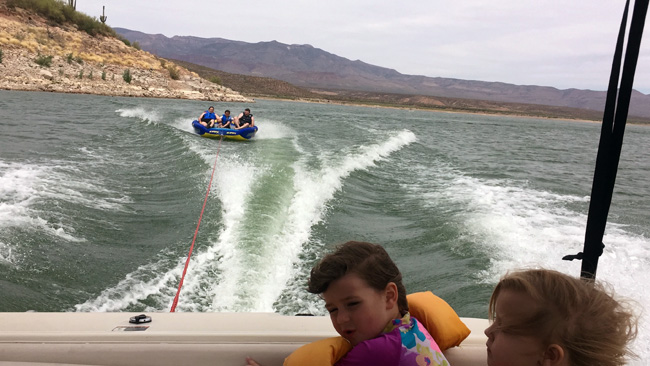 playing around on the boat. One of Terra's complaints about me is that I don't do well and making time to just go and have fun. I am always planning what we can "do" or "accomplish" when I have a Saturday. This is forced recreation for all involved. We really enjoy it when we embark on it, but sometimes the planning of when we will go gets difficult. Normally we wake early - around 4:00 a.m. and get on the road between 4:30 or 5:00. With the drive to the lake, this puts us on the water between 8:00 and 8:30. We will play around until sometime between 3:00 and 4:00 and then we arrive home about 1 hour after dark. It is a long day, but it is only 1 day. |