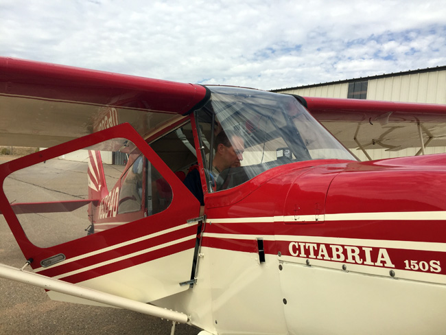 in a 1979 Citabria. It is a high wing tail dragger that is made