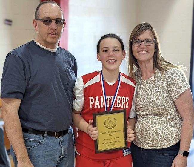 Rachel loves playing sports. Her favorite this year were Volleyball and Basketball. She had some great coaches. Last year the Basketball coach loved Rachel, a new coach this year coached the girls team and her old coach coached the boys team. IT was fun to see her old coach come to each of her games and cheer Rachel on. Rachel did not like dribbling. She is very aggressive nd would steal the ball and then quickly pass it. When she wold take the ball and dribble down the court her old coach came unglued on the sidelines cheering Rachel on. It was so cool to see. The above picture of is of Rachel and her old coach. Rachel was given the Most Valuable Player Award for the entire season. So cool! I hope she continues to do sports in High School. |