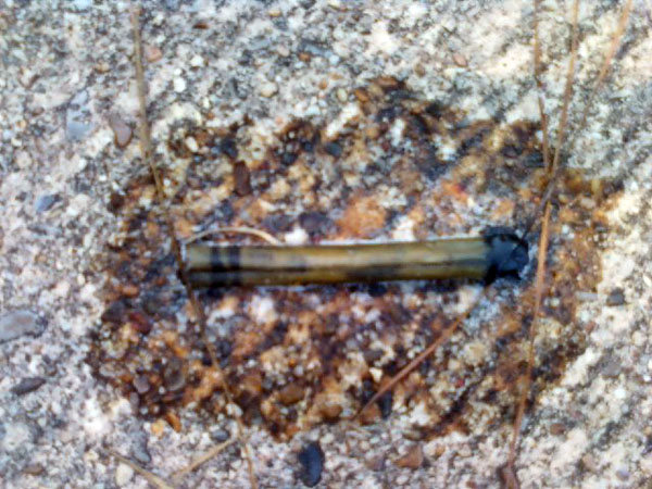 | These last two pictures are not up to the quality as the previous ones, but since Terra stole the camera and kept it in AZ, I am left with the after thought of a camera that exists on the back of the cellular phone in my possession. This picture is of what was waiting for me to come home to. It is the remains of a crayon that was left in our drive way and since we were gone (for 5 days) has melted and ran all over the concrete. Apparently it has been hot here while we were gone. |