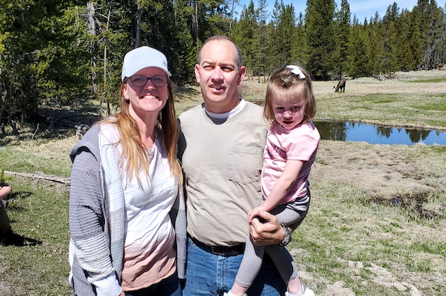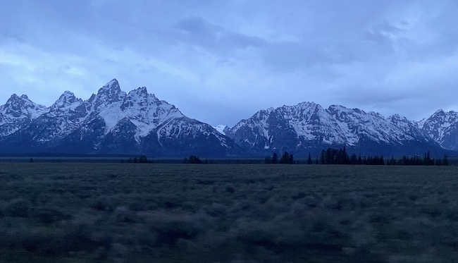 AJ and Brittany ended up joining us throughout the visit of the park. This was primarily due to our unreliable vehicle. Here we are at the part exit. We took a photo by the sign. The photo of the Tetons was taken out of the car window. Again we had planned to stop, but this time the weather cooperated, but the vehicle didn't. On the trip the car didn't start 4 different time. It appears that for some reason the vehicle anti-theft system activates when you are trying to start the car and doesn't supply any power to the fuel pump.