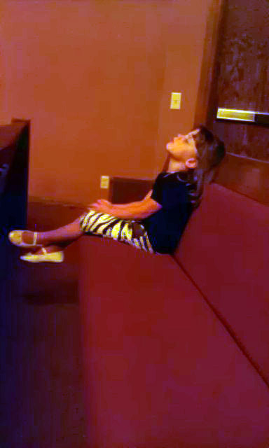 I know this is not a great picture, but it sure tells a great story. Ever since I have been put into the bishopric, Terra has the great pleasure of dealing with the kids by herself. Our kids aren't the best behaved in church and when we were living in Arkansas I had to take Ethen and Kyle back to church after dinner on a Sunday and let them practice being quiet during church. I simply took a few chairs and set them up - took a timer and set it for 10 minutes. If they talked I would restart the timer. After about 1.5 hours Ethen & Kyle decided that they would be quiet for 10 minutes. Well today, after many threats, Rachel volunteered for the same training class in that she wouldn't act like a sane person during sacrament meeting. So after I got home and we ate dinner, back to the chapel we went for some "practice". Rachel didn't take as long as Ethen & Kyle did, but then again there was only one of her - and therefore less distractions. After I took this photo (~ 3 quiet minutes) she turned to me and said I have a hard time keeping my mouth shut for that long. Well she is correct. She kept making noises of one kind or another and we were there about 45 minutes before she had enough "practice". Now we will have to wait until next week to see if she actually learned anything... |