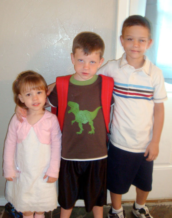 | Well last Thursday the kids started back in school. This year Ethen is in 2nd Grade with Kyle starting kindergarten. Kyle has an all day kindergarten (which I don't agree with, but am powerless to change) and comes home with tales of it being too long. I suspect that no matter how long the day is he would think that it was to long. Ethen was rather opposed to going back to school this year. He really enjoyed it last year, but this year he has a different teacher, and our neighbor (about 3-4 years older than Ethen) told Ethen that he would have the hardest teacher in the school. Needless to say that this didn't make for an easy send off for Terra. She had to down right drag him kicking and screaming to school and then leave him there once the door closed. | ![]() |