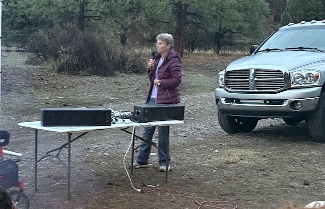 visit Sunday, just befre the downpour. She joined us for dinner and we all huddled underneath tarps