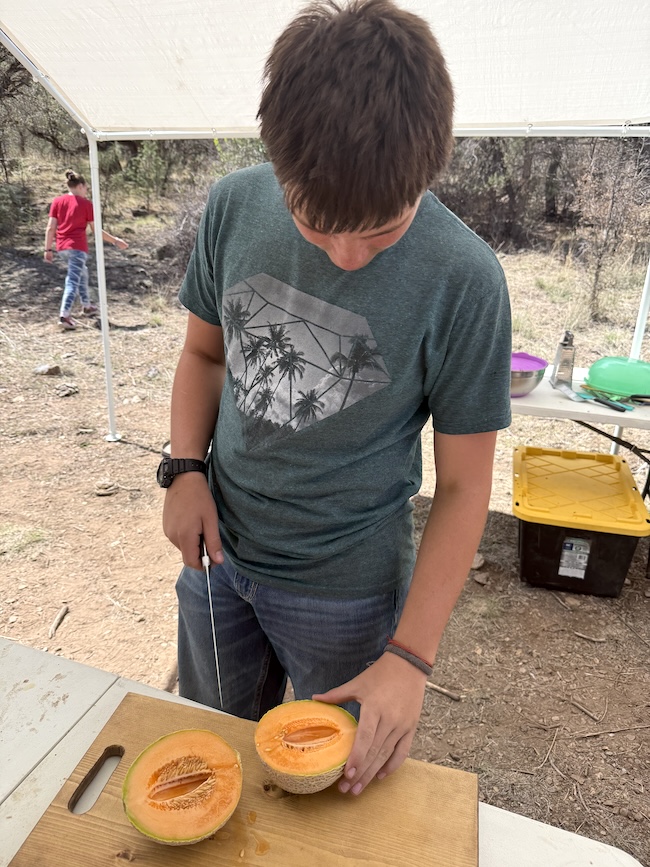 Landen planted a garden and he grew mellons. We brouget up some of his cantelopes and they were wonderful.