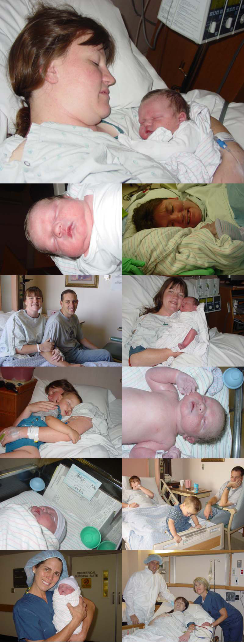 I know that the format is crude, but given the time constraints and the demand for photos, this is what you get. If you have any questions, feel free to give us a call. The child was born Sunday August 7, 2005 @ 08:30. He wieghed 8 pounds 6.9 ounces and was 19 inches long. Both are child and mother are doing well and all looks good. The child will be named Kyle Dallan Hatch (subject to change). But if you ask me, with his no neck and his forhead that rests on his nose, he would pass for a "Gueido".