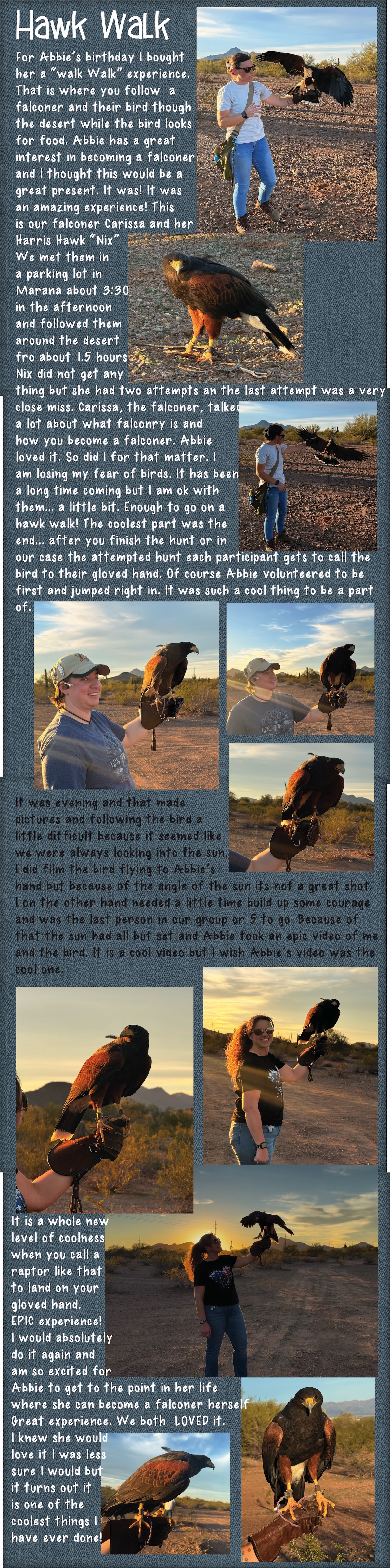 Abby with the falcon landing on her arm